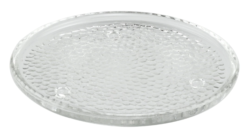 Round glass candle plate has 3 feet on the bottom, plus a simply elegant textured design that adds a little shimmer to your candle display. Plus, it helps keep wax from dripping on counters and furniture surfaces. Each accommodates up to a 4-inch diameter pillar candle.