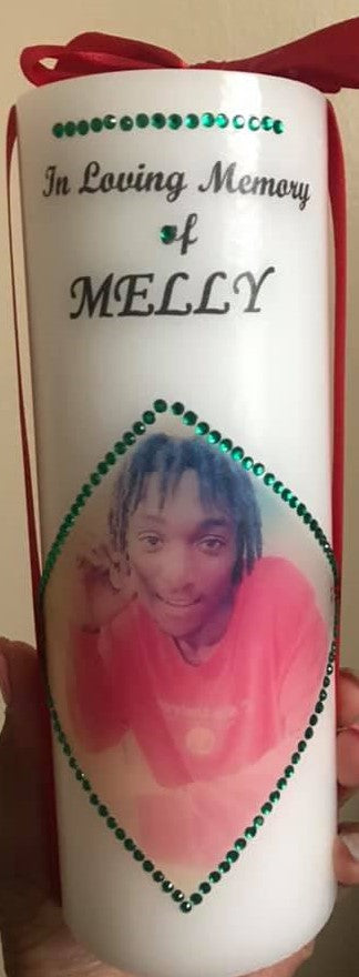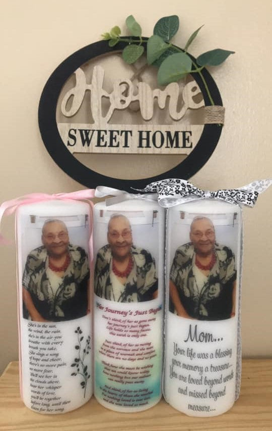 Personalized non-scented 8 inch pillar candles. Customize your candles with a photo and your special message or poem.